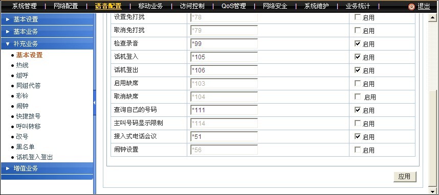 2.进入【语音配置】-【补充业务】-【基本设置】,如下图所示: